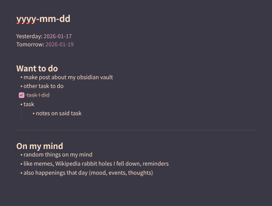 I should note this is just my usecases. For other people's systems daily notes work pretty well. But as it stands for now, it's kinda redundant.